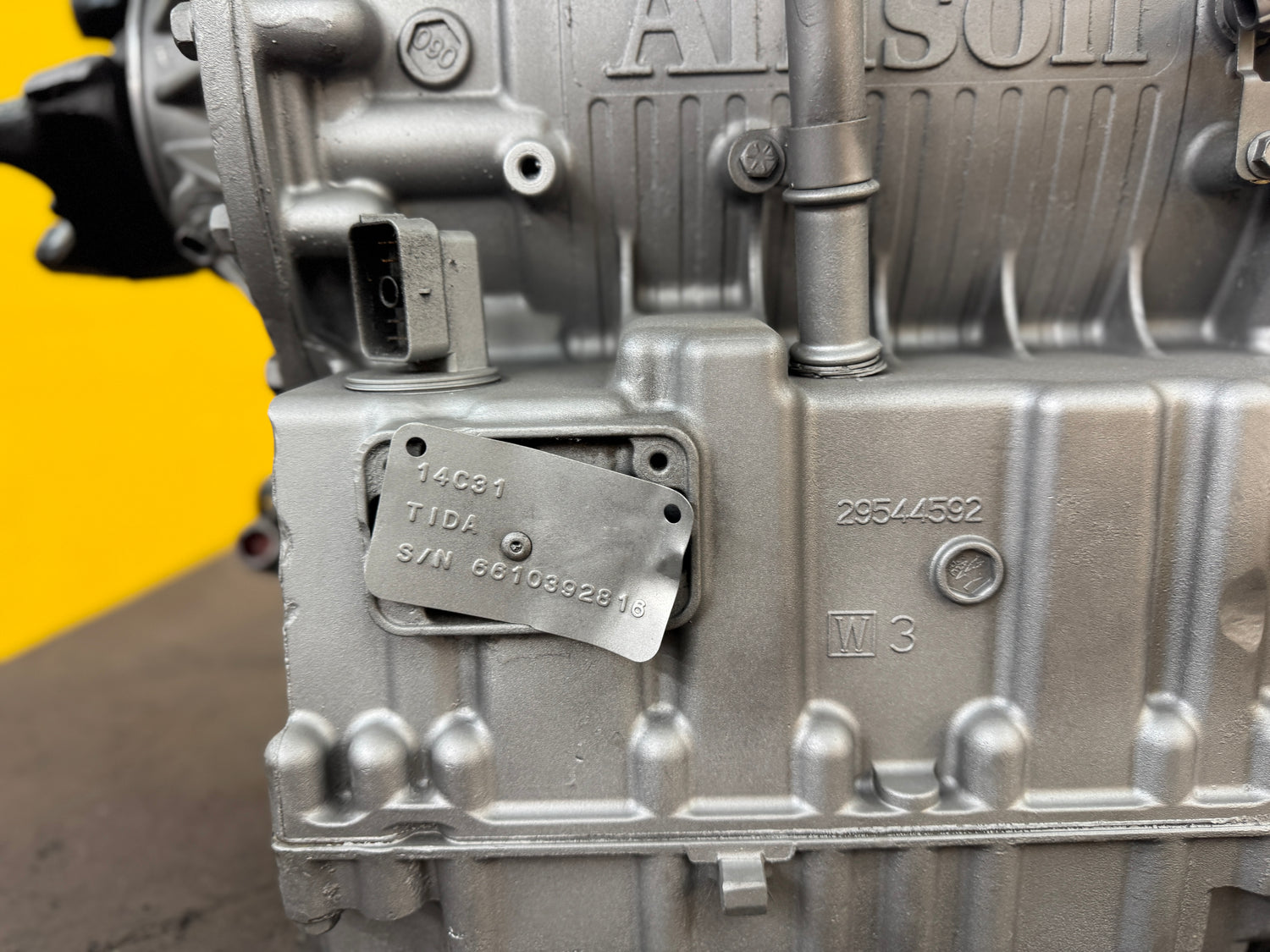 (GOOD USED) Allison 4500RDSP Transmission For Sale, 4500RDS w/ PTO Provision, 4500RDS P, Casting # 29544592, TIDA, Part # 14C31, off Cummins 8.3 Engine, Serial # 6610392816, Stock # 9314