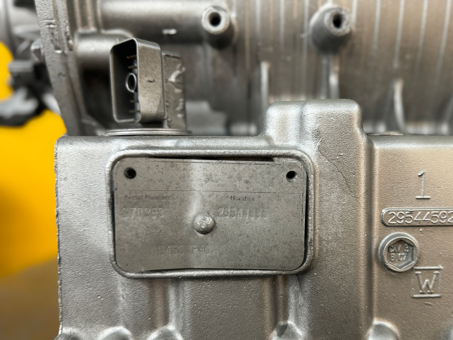 (GOOD USED & INSPECTED) Allison HD4500P Transmission w/ PTO & Retarder For Sale, HD4500P4G, Part # 29544895, Muncie PTO # 38293-01, PTO Provisions, Square Plug, Casting # 29544592, Automatic Transmission, Wide Ratio, Other Muncie Part # 01742620, 032754 0312 5, NO CORE CHARGE, Serial # 178393, Stock # 9015| Tested & Inspected!