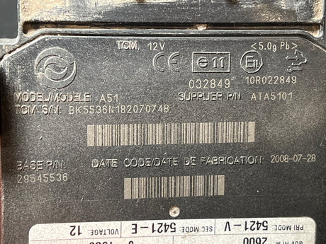 Allison 3200SP TCM Part # 29545538, e11, 10R022849, 032849, Model: A53, Supplier P/N ATA5301