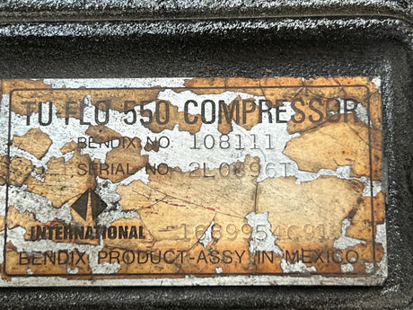 Bendix TU-TLO 550 Air Brake Compressor Bendix Part # 108111, IH Part # 1689954C91