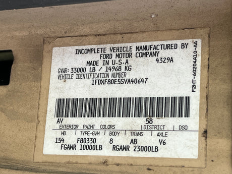 1997 Ford F800 Low Profile Option Conventional Cab