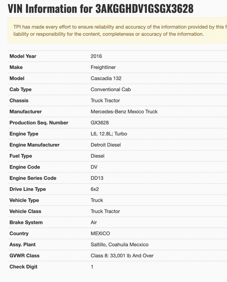 2013 Freightliner Cascadia 125 Conventional Cab For Sale, Front Axle to Chassis W/Title