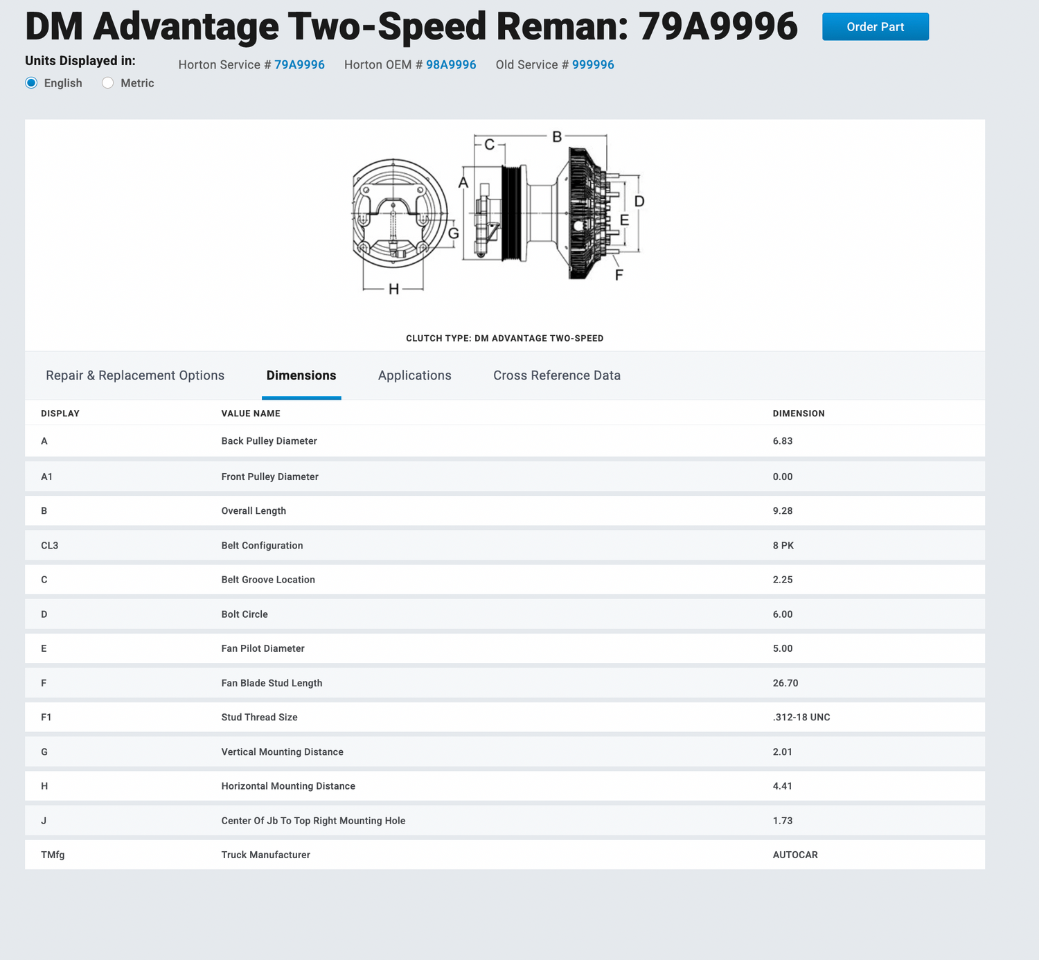 Cummins ISL9 Horton Fan Clutch P/N 98A9996, Pulley P/N 601536, Base P/N 601921 is backordered and will ship as soon as it is back in stock.