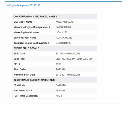 2010 Cummins ISL9 Diesel Engine (EPA10), CPL 3123