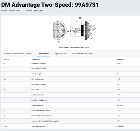 Cummins ISM Horton Fan Clutch Part # 99A9731