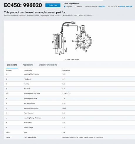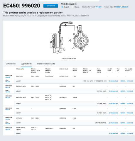 Cummins ISB 6.7L Horton Electromagnetic EC450 Fan Clutch Part # 996020