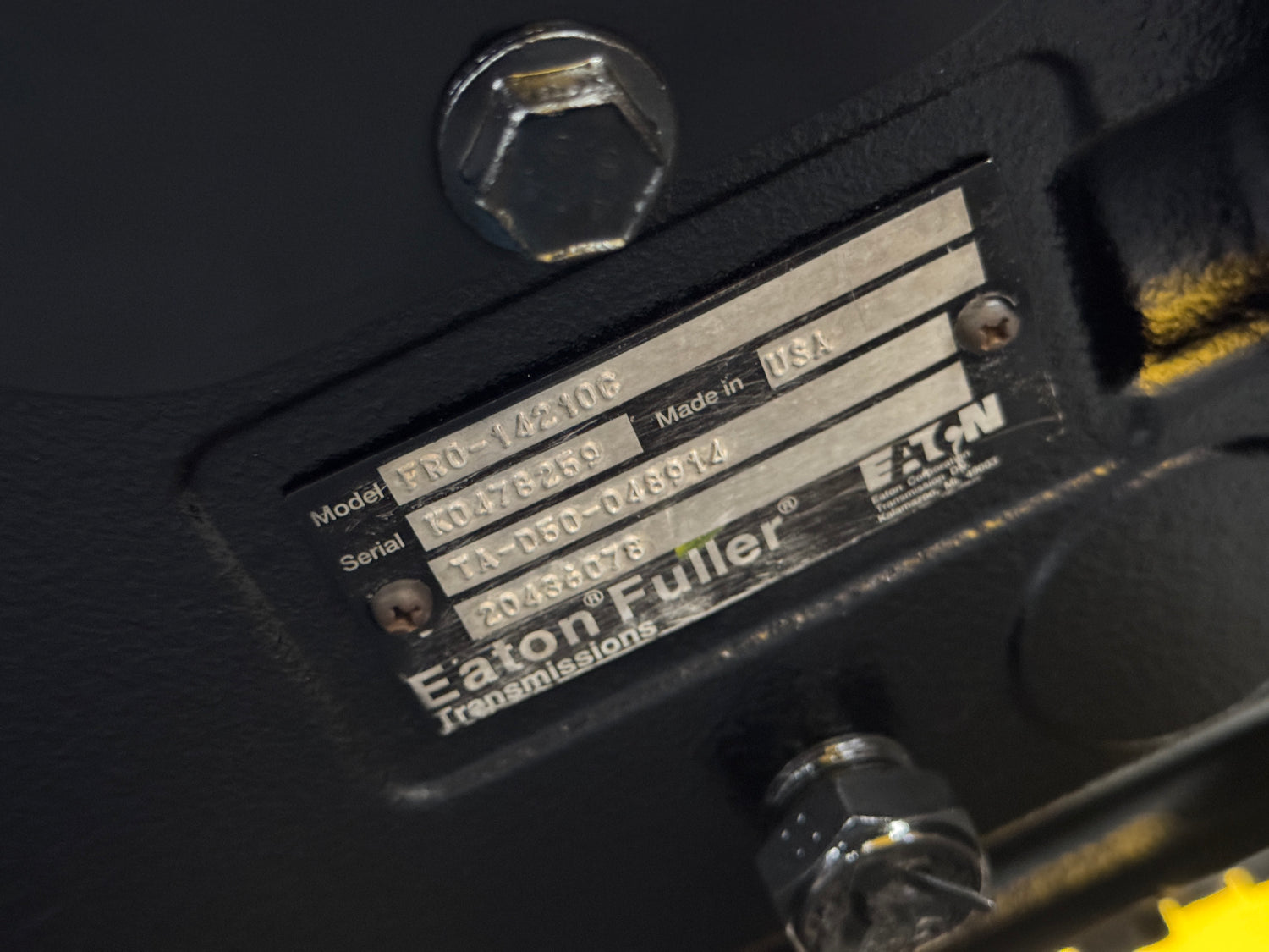 (GOOD USED & NO CORE CHARGE) Eaton/Fuller FRO14210C Transmission For Sale, 10 Speed with Overdrive, Part # TA-D50-048912, TAD50048912, 20436078, Fuller Roadranger Twin Countershaft w/ Overdrive, 1450 lbs-ft Nominal Torque Capacity, FR Series Design Level, 10 Forward Speeds, Overdrive Gear Set Ratio, FRO-14210C, FR014210C, Serial # K0478259, Stock # 9835 | Tested & Inspected!