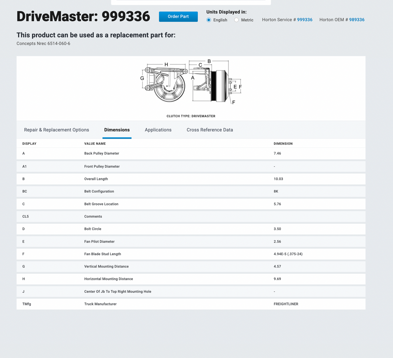 2004 Mercedes MBE4000 Horton DriveMaster Fan Clutch P/N 999336, Base P/N 601721, Pulley P/N 601722 is backordered and will ship as soon as it is back in stock.