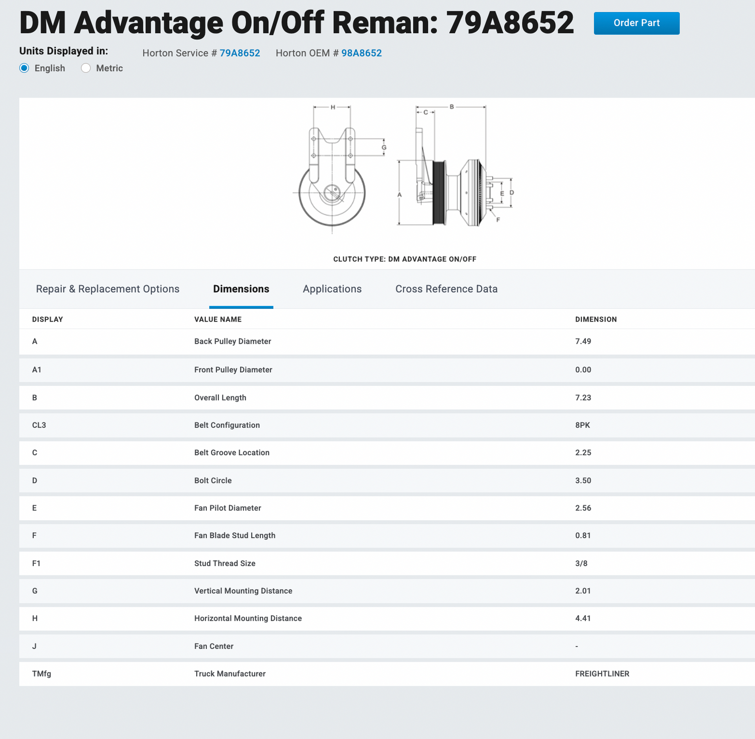 (GOOD USED) Cummins ISL9 Horton 2-Speed Fan Clutch 98A8652 For Sale, Part # 98A8652, Mounting Base Part # 602073, 5K21, Pulley Part # 601834, Pulled Off 2015 Cummins ISL9 w/ CPL # 4525, CM2350 L101, Also fits Cummins ISC, Serial # 7533643, Stock # 9553