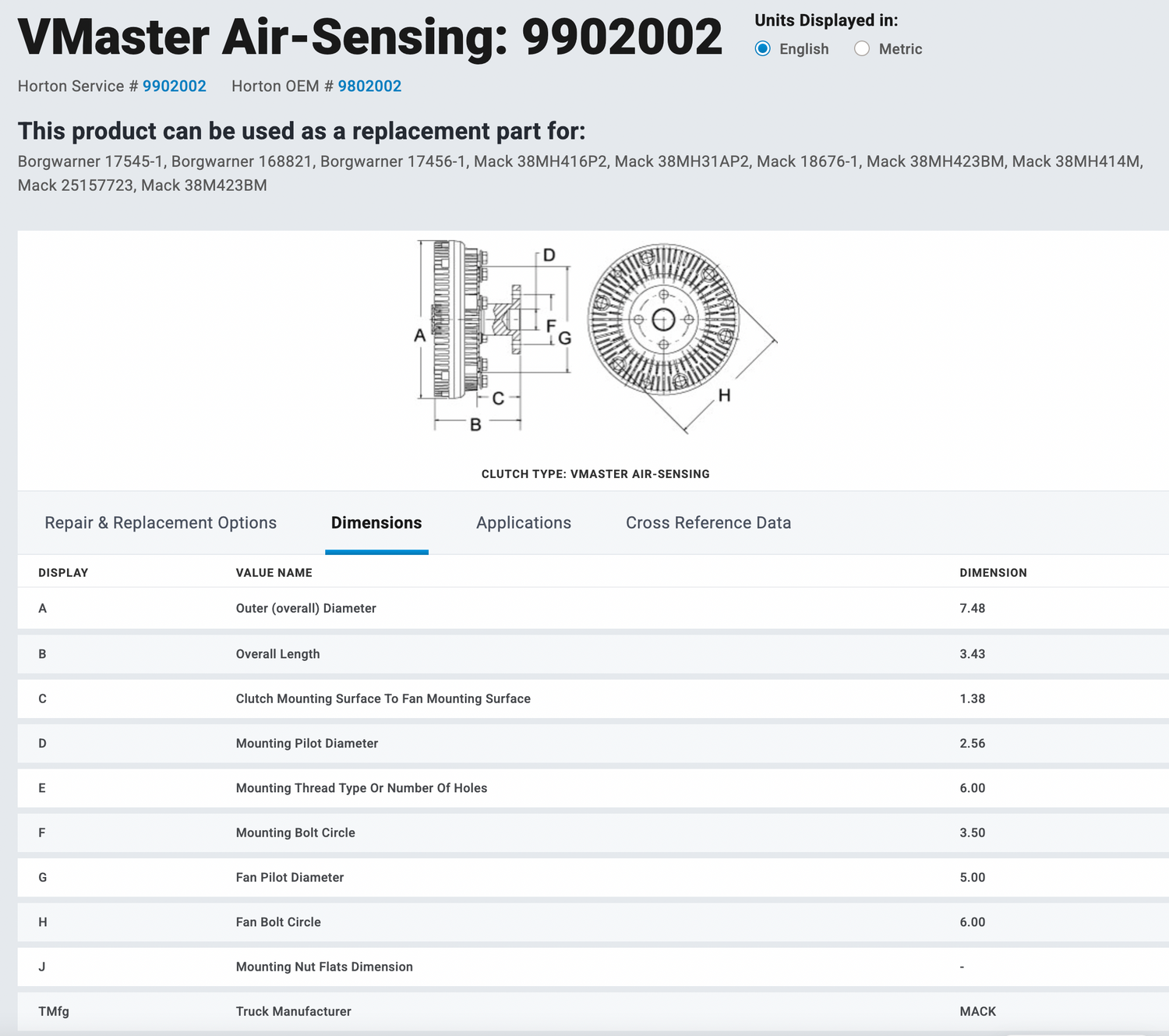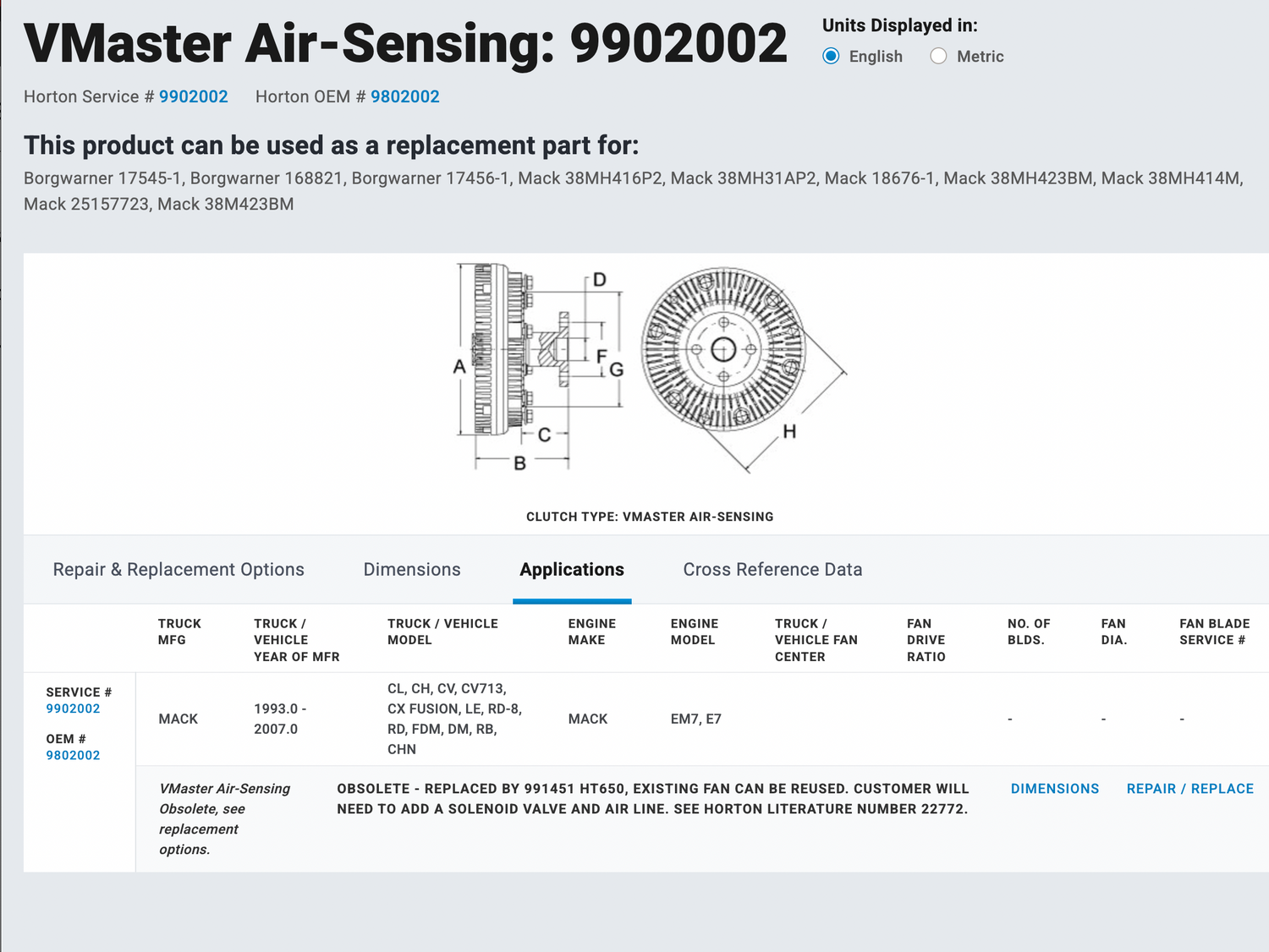 Mack E7 ETech VMaster Air-Sensing Fan Clutch Assembly Part # 38MH423BM is backordered and will ship as soon as it is back in stock.