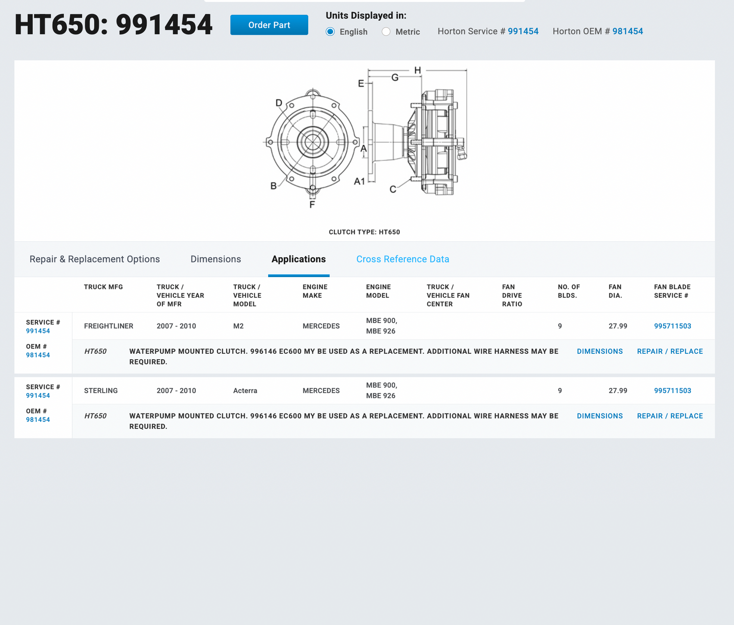 Mercedes MBE900 Horton Fan Clutch 991454 is backordered and will ship as soon as it is back in stock.