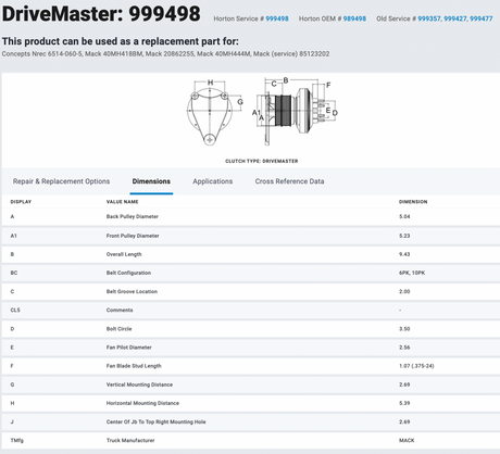 Horton Mack 999498 Fan Clutch For Sale