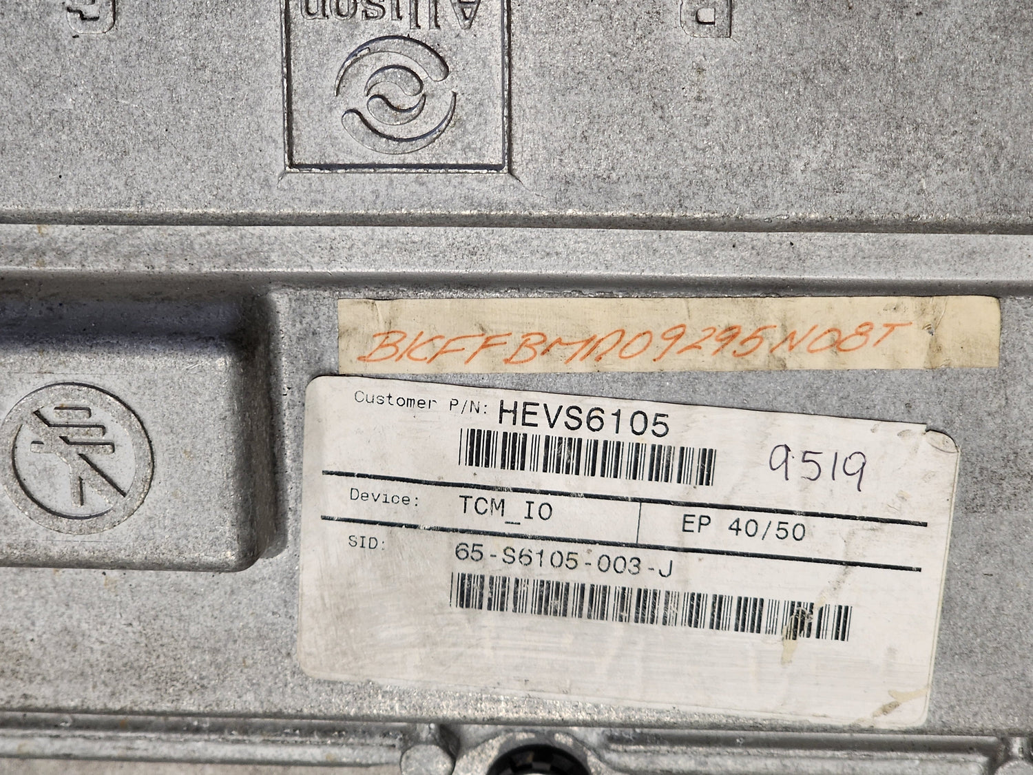 (TESTED W/ WARRANTY) 2009 Allison EP40/50 ECU-TCM For Sale, E11, 10R020284, 12Volts, 466, 020284, Customer Part # HEVS6105, Device: TCM_I0, SID: 65-S6105-003-J, Part # 29545503, Serial # BKFFBMR09295N08T, Stock # 5570 | Tested & Inspected!