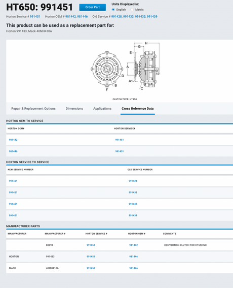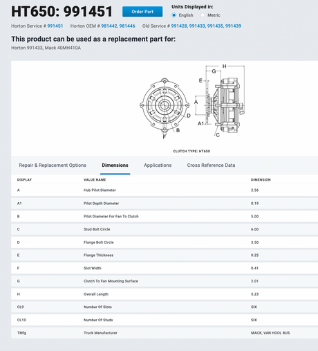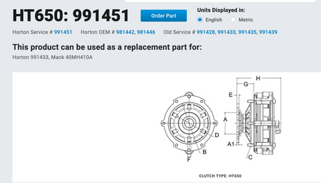 Mack E6 / E7 Horton HT650 Fan Clutch Part # 991451