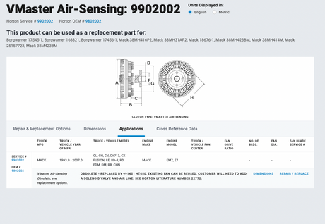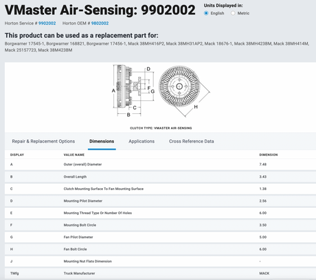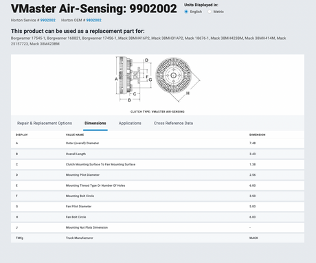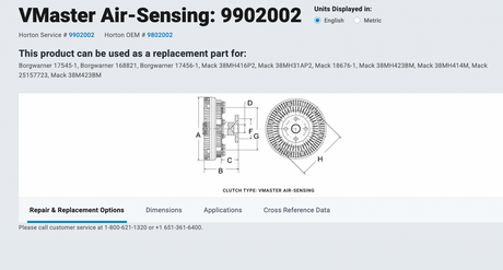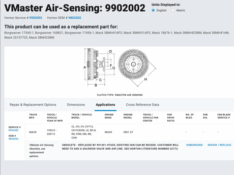 Mack E7 ETECH Fan Clutch Part # 38MH416P2
