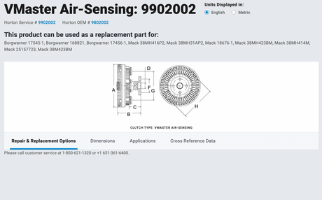 Mack EM7 / E7 Horton VMaster Air-Sensing Fan Clutch Part