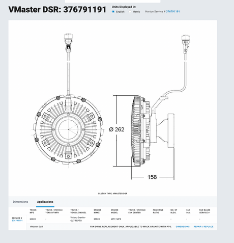 Volvo D13 Visco Fan Clutch 43MH55M For Sale, Part # 100672137