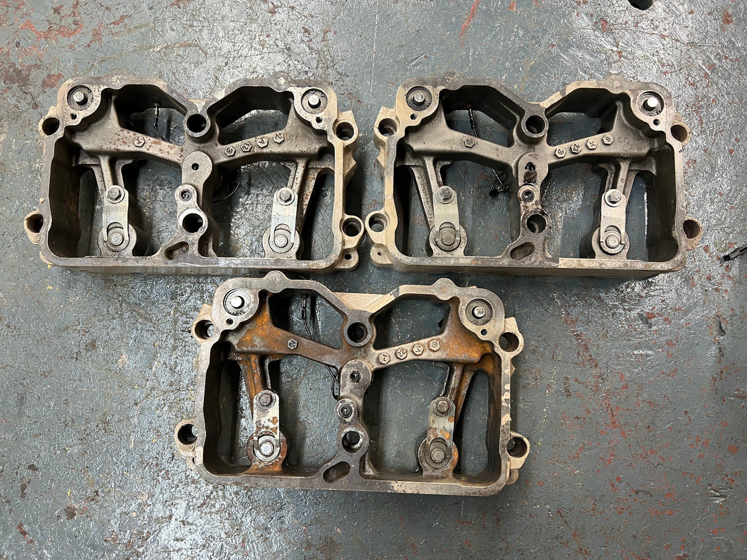 (GOOD USED / SOLD AS SET) 1988 CUMMUNS NT/NH 855 JAKE BRAKES MOD 401C PART # 013143 W/ BOLTS & SCREWS FOR SALE, MODEL: 401C, PART # 013143, PULLED FROM 1988 CUMMINS BIG CAM 4 ENGINE w/ CPL 1211, STOCK # 8770 | COMES AS SEEN IN PHOTOS! SOLD AS SET!