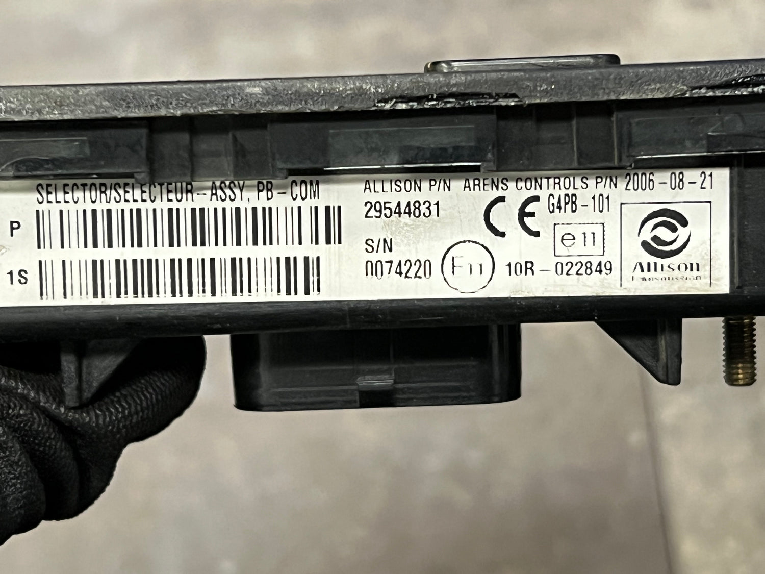 (TESTED W/WARRANTY) 2006 Allison Transmission Push Button Electric Shifter Pad 29544831 For Sale, Selector/Selecteur-ASSY, PB-COM E11, 10R-022849, Part # 29544831, ARENS Control Part # G4PB-101, G4PB 101, G4PB101, Serial # 0074220, Stock # 8652 | Tested & Inspected!