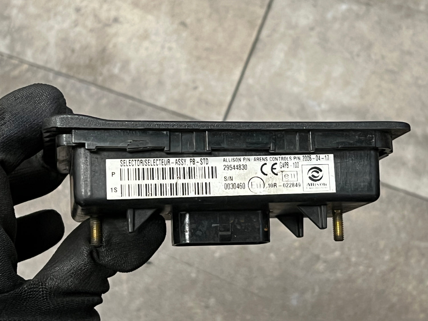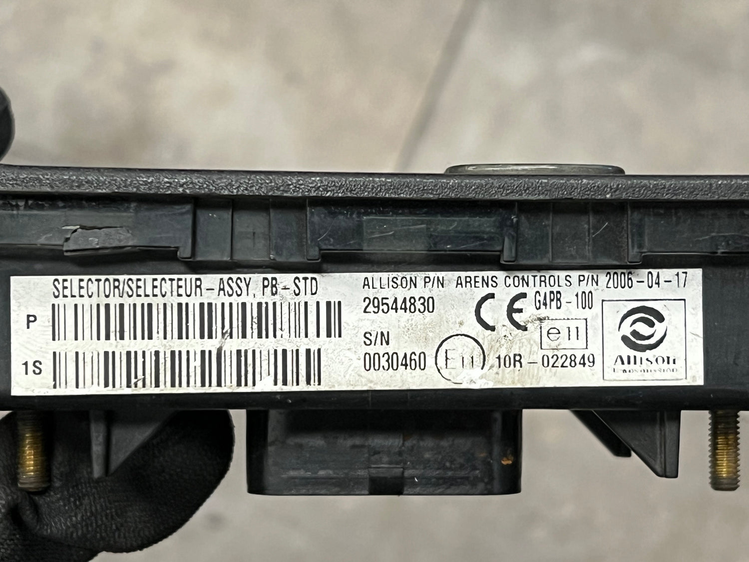 (TESTED w/WARRANTY) 2006 Allison 29544830 Transmission Push Button Electronic Shift Pad For Sale, E11, 10R-022849, PB-STD, Part # 29544830, ARENS Control Part # G4PB-100, G4PB 100, G4PB100, Serial # 0030460, Stock # 8648 | Tested & Inspected!