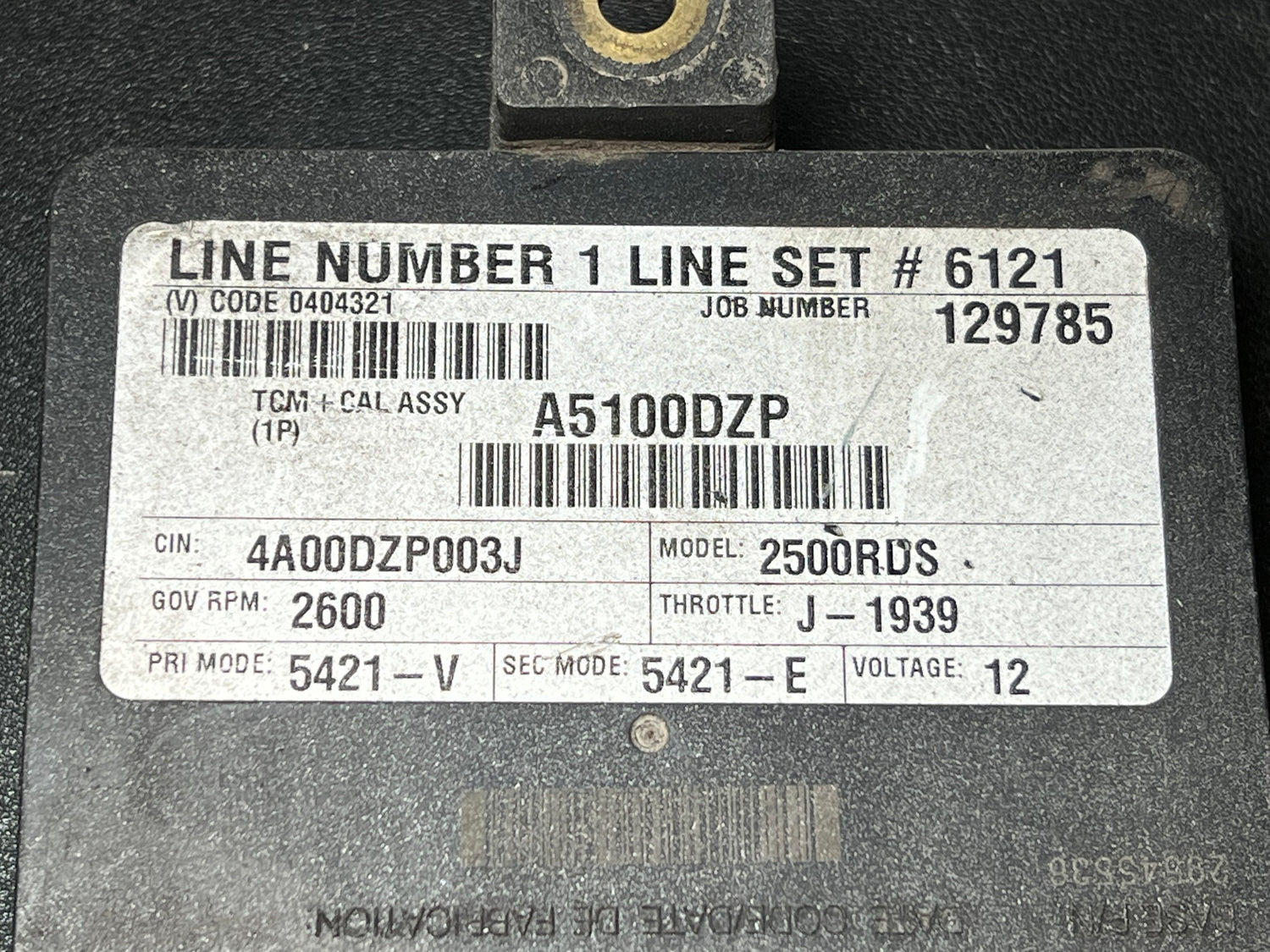 (TESTED w/ WARRANTY) 2008 Allison 2500RDS Transmission Control Module (TCM) Part # 29545536 For Sale, Part # 29545536, 12V, Model A51, Supplier P/N ATA5101, 10R022849, LINE NUMBER 1 LINE SET # 6121, (V) CODE 0404321, JOB NUMBER 129785, TCM+CAL ASSY A5100DZP, CIN: 4F00DZP003J, GOV RPM: 2600, THROTTLE: J-1939, PRI MODE: 5421-V, SEC MODE: 5421-E, Serial # BK5536N18207074B. Stock # 9165