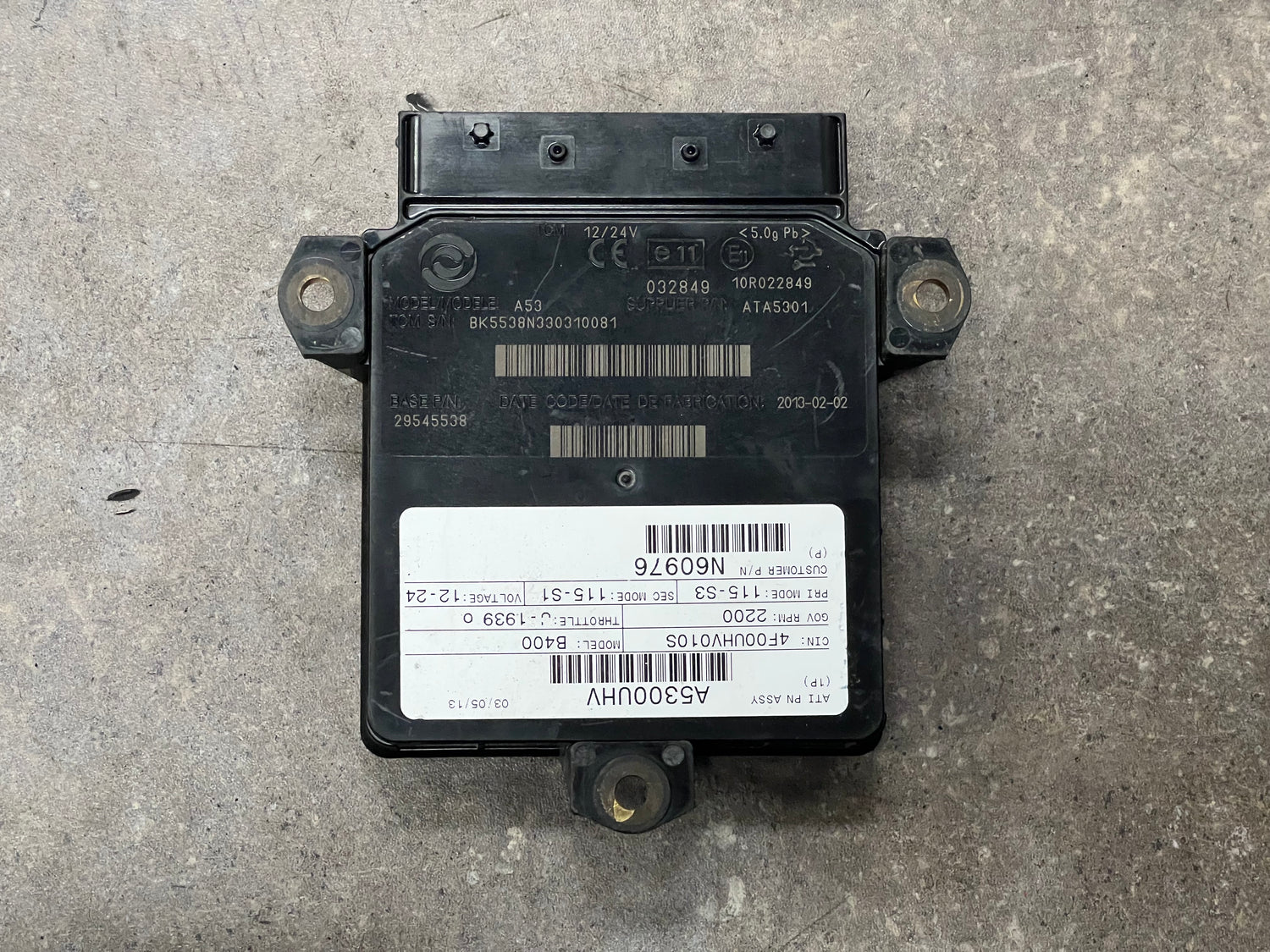 (GOOD USED) 2013 Allison B400 Transmission Control Module (TCM) Part # 29545538 For Sale, 12/24V, Model No. A53, e11, 10R022849, 032849, Part # 29545538, Supplier Part # ATA5301, ATI PN ASSY: A5300UHV, CIN: 4F00UHV010S, Model: B400, GOV RPM: 2200, Throttle: J-1939 o, PRI Mode: 115-S3, SEC Mode: 115-S1, 12/24V, Customer P/N N60976, Serial # BK5538N330310081, Stock # 8472 | Tested & Inspected!