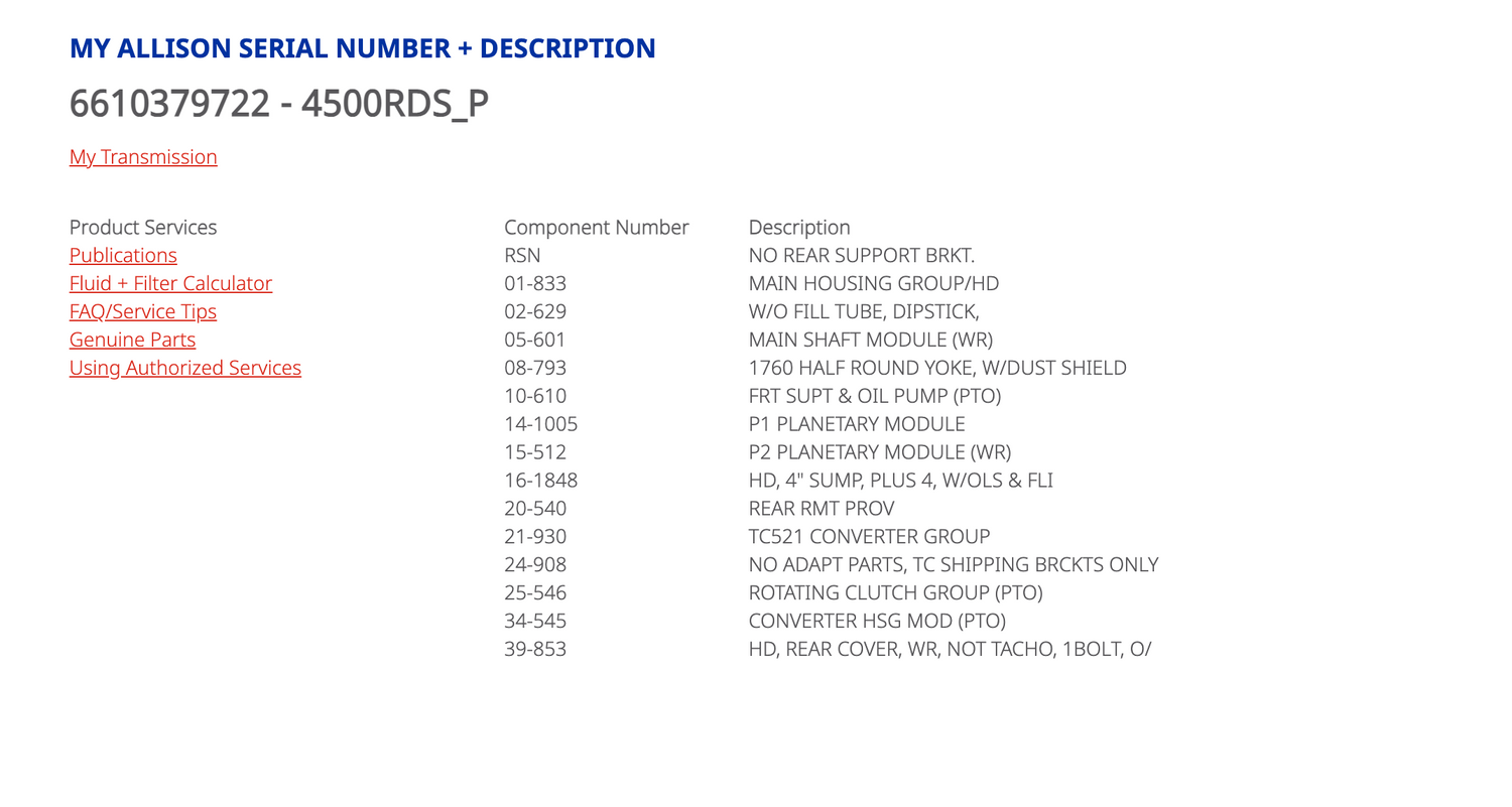 Allison 4500RDS P Transmission w/ PTO Provision , 29544592 is backordered and will ship as soon as it is back in stock.