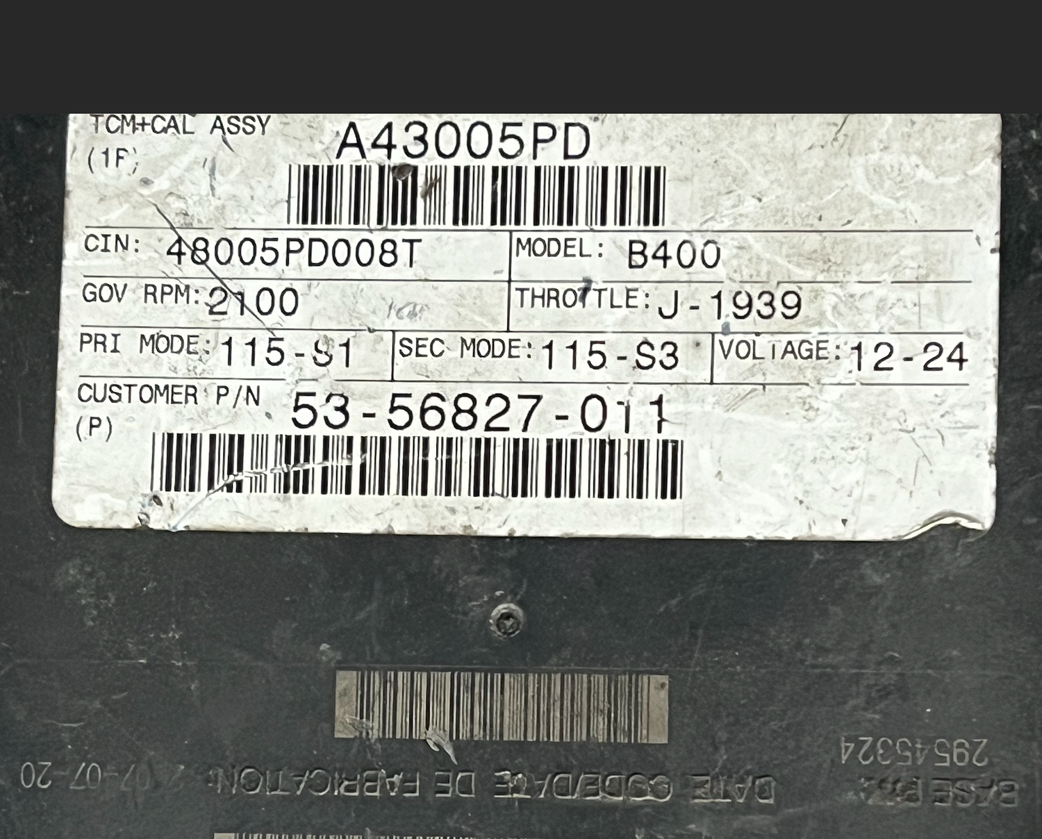 (GOOD USED) Allison B400 TCM Part # 29544775, Model No. A43, E11, 022849, 10R022849, Supplier P/N # ATA4302, Pulled off Model B300, TCM+CAL ASSY A43004N1, CIN # 44004N10023, GOV. RPM 2500, PR Mode 115-S3, Serial # BK5324N37191814VL, Stock # 8473 | Tested & Inspected!