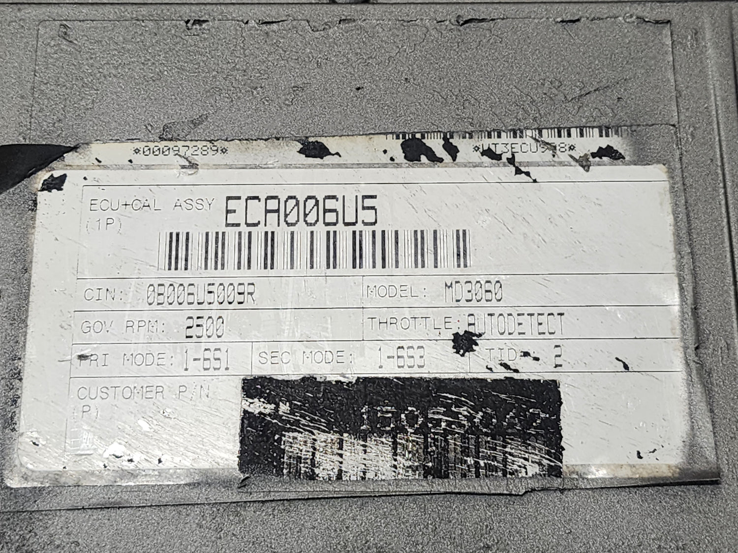 (GOOD USED) Allison MD3060 TCM, Model No. WT3ECUA908, Pulled off Model MD3060, ECU+CAL ASSY ECA006U5, CIN # 0B006U5009R, GOV. RPM 2500, PR Mode 1-6S1, Serial # 00097289, Stock # 4307 | Tested & Inspected!