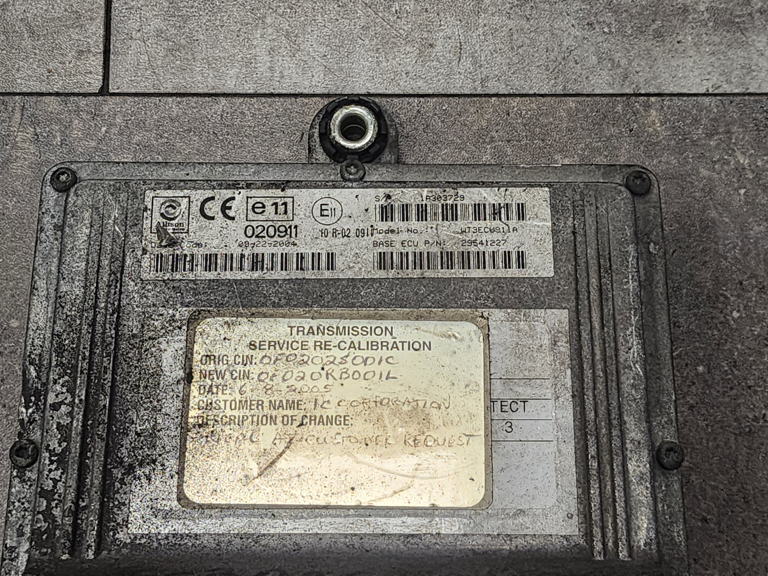 (GOOD USED) Allison, TCM Part # 29541227, Model No. WT3ECU911A, e11, 020911, 10R02 0911, CIN # 0F020RB001L, Serial # 1A303729, Stock # 4193 | Tested & Inspected!