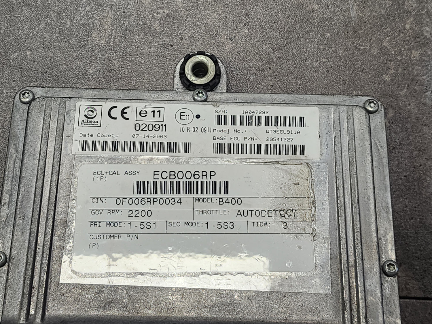 (GOOD USED) B400 Allison, TCM Part # 29541227, Model No. WT3ECU911A, e11, 020911, 10R02 0911, ECU+CAL ASSY ECB006RP, CIN # 0F006RP0033, Serial # 1A047292, Stock # 4196 | Tested & Inspected!