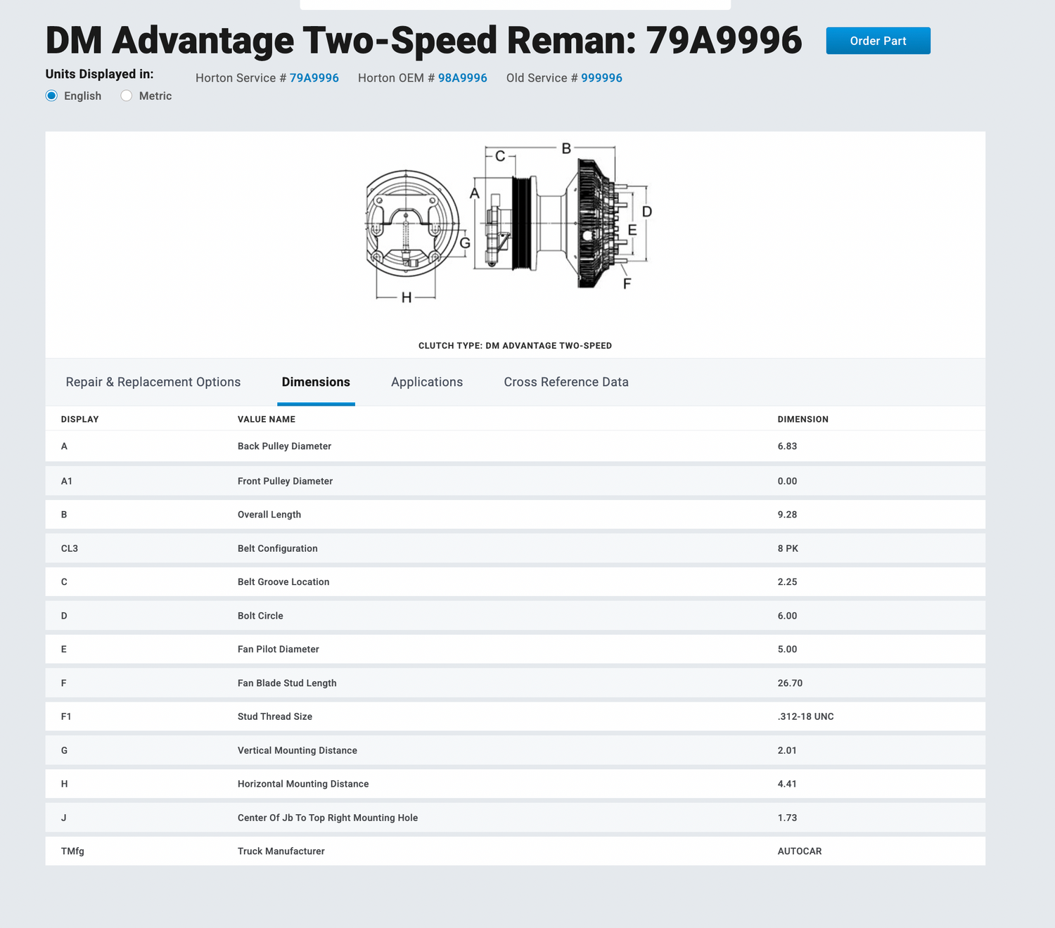 (GOOD USED) Cummins ISL Horton Fan Clutch 98A9996 For Sale, Part # 98A9996, Pulley Part # 601536, Mounting Base Part # 601921, D4, 1245B, Horton New Service # 79A9996, Horton Old Service # 999996, Horton OEM # 98A9996, Also Fits Cummins ISC & QSC Applications, Serial # 74007755, Stock # 9734