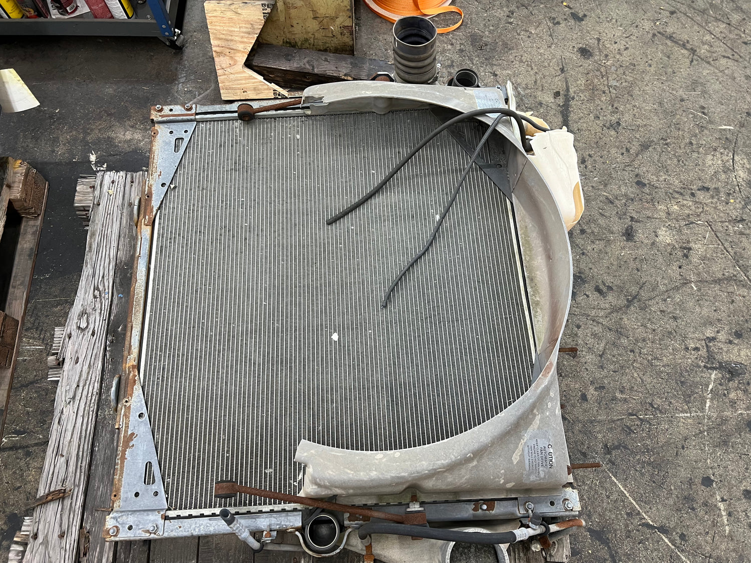 (GOOD USED) Ford / Sterling Cooling Assembly VAL1050056 For Sale, Valeo Part # VAL1050056, Chassis # K85570, Line Date: 2002-08-2022, Hose Connector Part # F6HT-6C640-GA, Stock # 9929 **COSMETIC DAMAGE ON TANK, COMES AS SEEN IN PHOTOS**