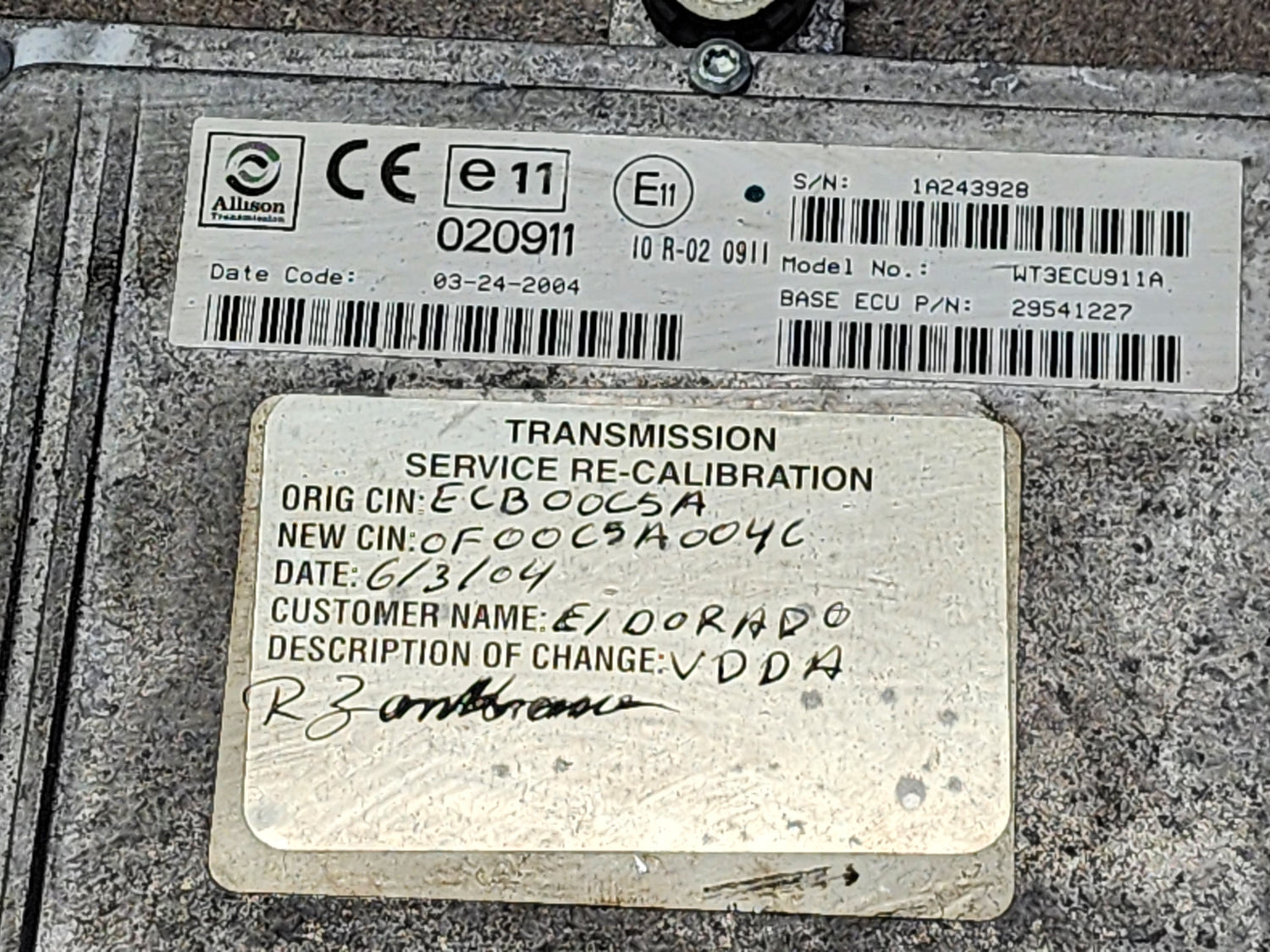 (GOOD USED) 2004 Allison TCM Part # 29541227 For Sale, e11, 020911, 10R-020911, Model No. WT3ECU911A, CIN # 0F00C5A004C, Serial # 1A243928, Stock # 5696 | Tested & Inspected!