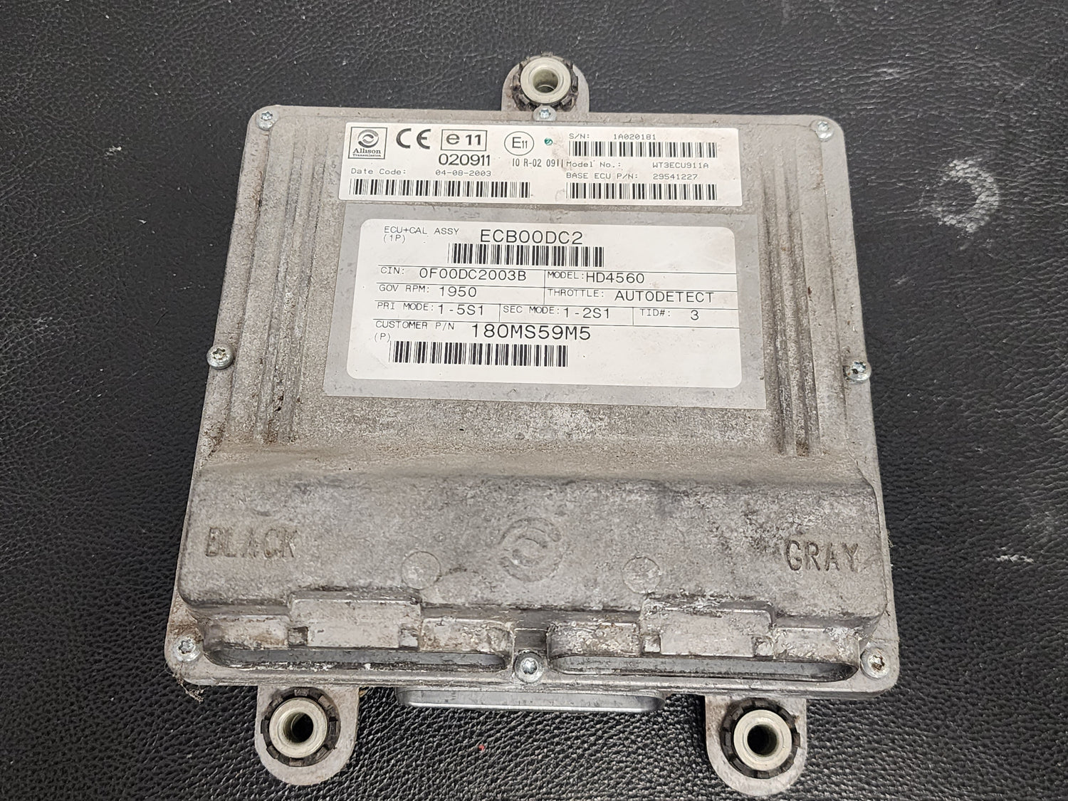 (GOOD USED) 2004 Allison TCM Part # 29541227 For Sale, e11, 020911, 10R-020911, Model No. WT3ECU911A, ECU+CAL ASSY: ECB00DC2, CIN # 0F00DC2003B, GOV. RPM: 1950, PRI Mode: 1-5S1, SEC Mode: 1-2S1, Customer Part # 180MS5M5, Serial # 1A020181, Stock # 6243 | Tested & Inspected!