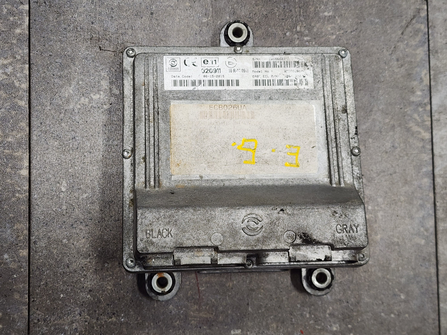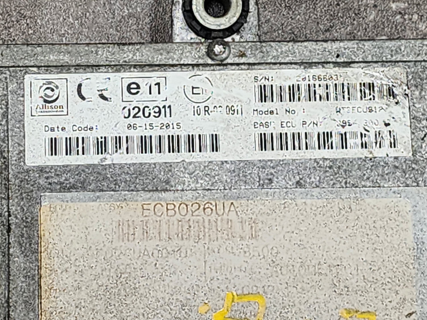 (GOOD USED) 2015 Allison B500 TCM Part # 29543300 For Sale, e11, 020911, 10R-020911, Model No. WT3ECU912, ECU+CAL ASSY: ECB026UA, Model: B500, Serial # 20166603, Stock # 5733 | Tested & Inspected!