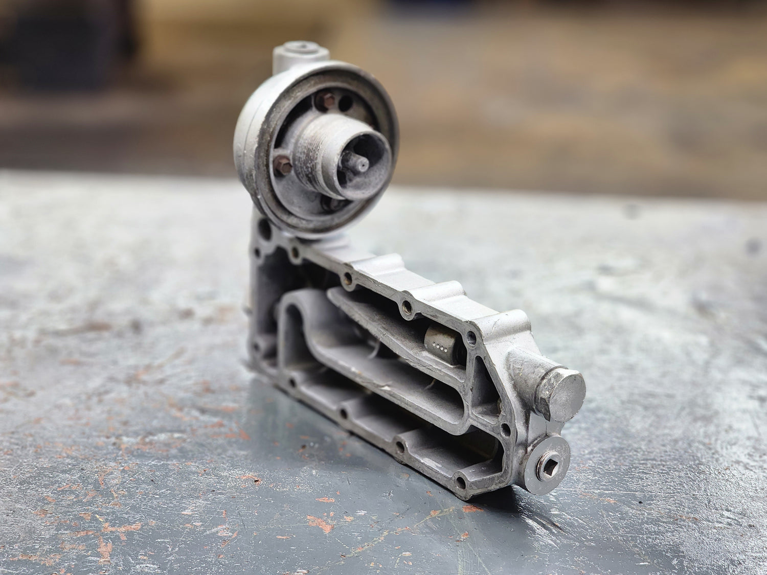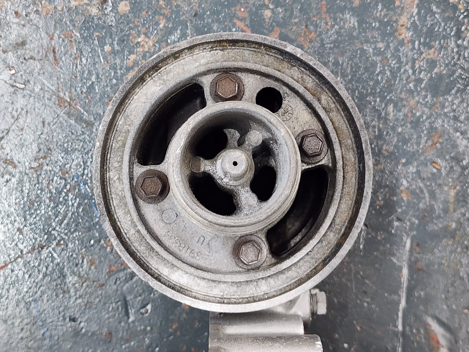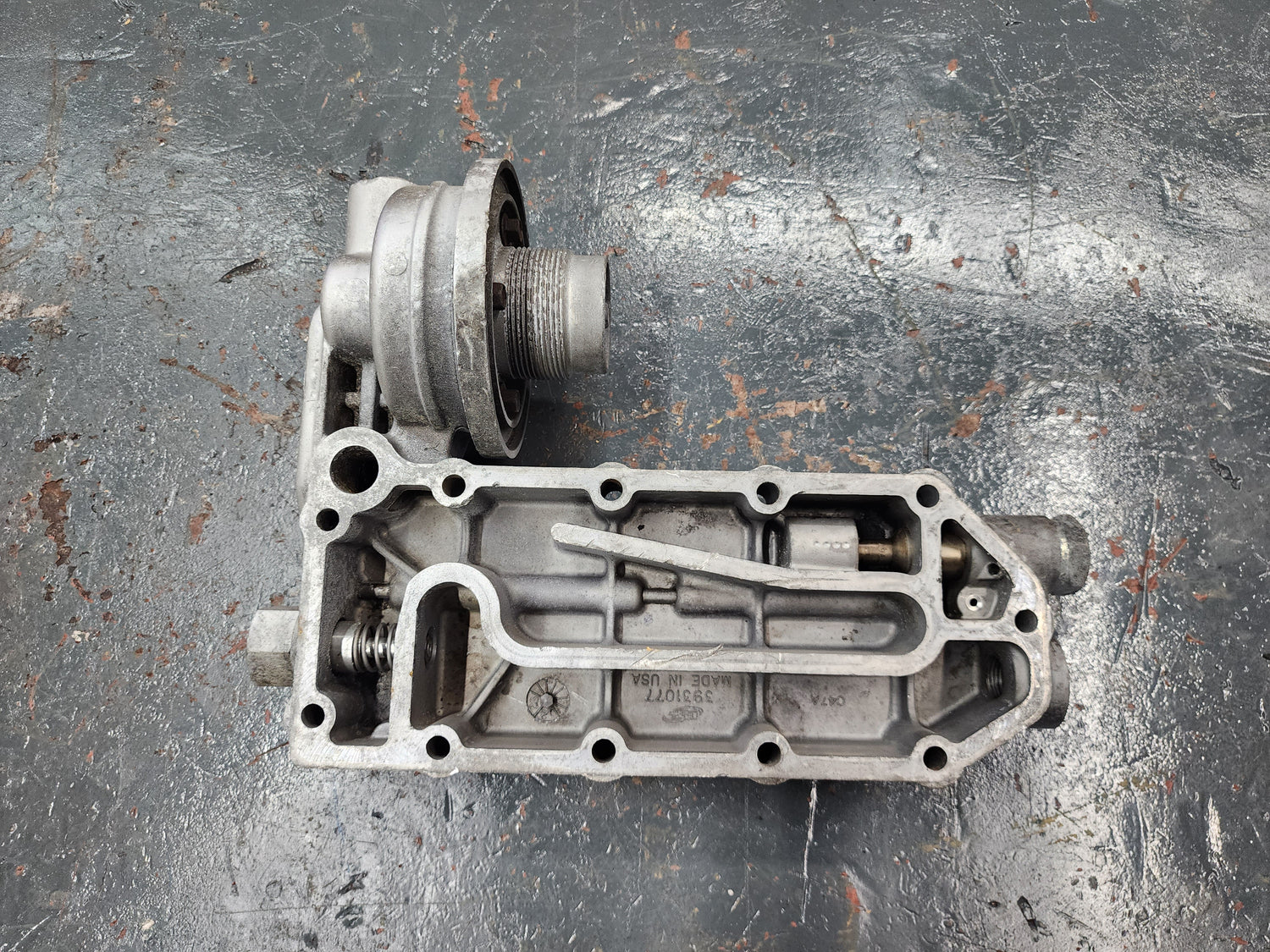 (GOOD USED) Cummins ISC Diesel Engine Oil Filter Base 3931077 For Sale, OEM Part # 3931077, Other Part # 3918334, Stock# 6654 | Tested & Inspected!