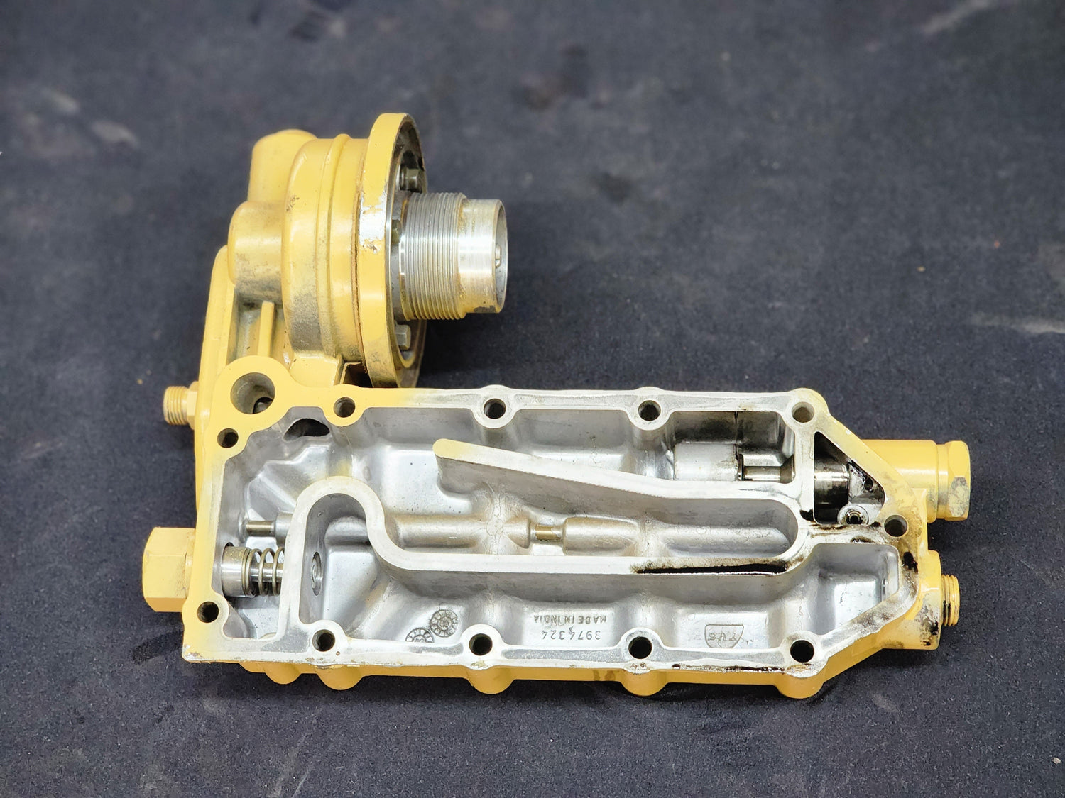 (GOOD USED) Cummins ISL 8.3L Diesel Engine Oil Filter Base Cooling Cover 3974324 For Sale, Pulled Off a Cummins ISC Diesel Engine, Part # 3974324, Stock# 5777 | Tested & Inspected!