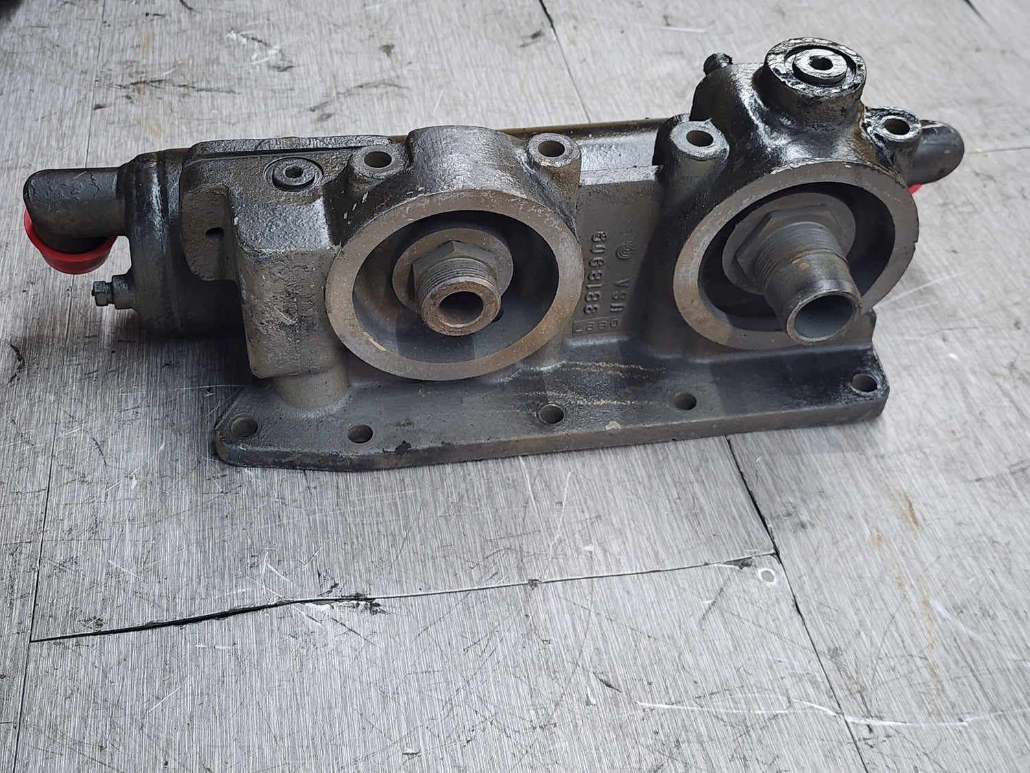 (GOOD USED) Cummins L10 Oil Filter Housing 3818909 For Sale, Part # 3818909, 0827, Stock # 5152 | Tested & Inspected!
