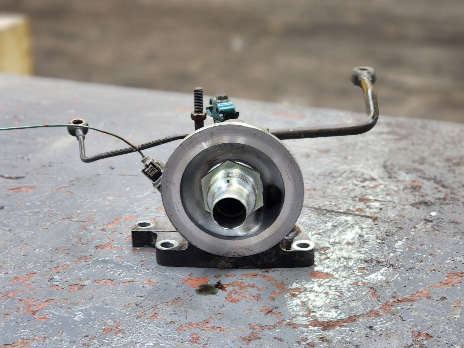 (GOOD USED) Isuzu NPR 4HE1XS Fuel Filter Base For Sale, Pulled from a 4HE1XS, Fits 1998-2003, Stock # 7803