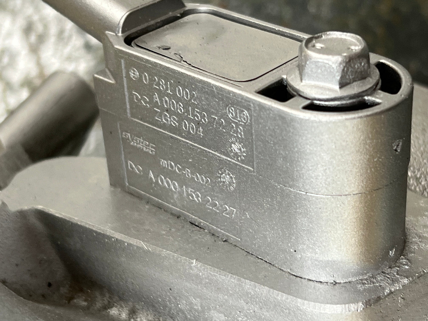 (GOOD USED) Mercedes MBE4000 Turbo Connection Air Tube w/ Pressure Sensor For Sale, Tube OEM Part # A 460 098 30 07 ZGS 002, A4600983007ZGS002, A4600983007 ZGS 002, Pressure Sensor Part # A 006 153 72 28 ZGS 004, A0061537228ZGS004, A0061537228 ZGS004, 0281002, mDC-B-002, A 000 153 22 27, Stock # 8308