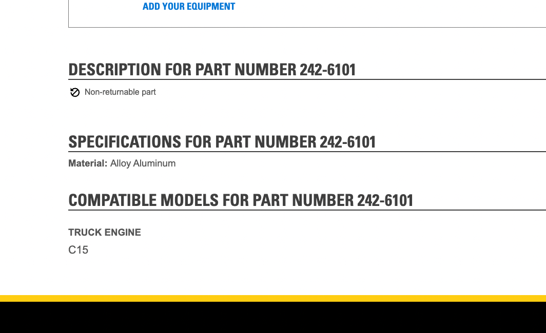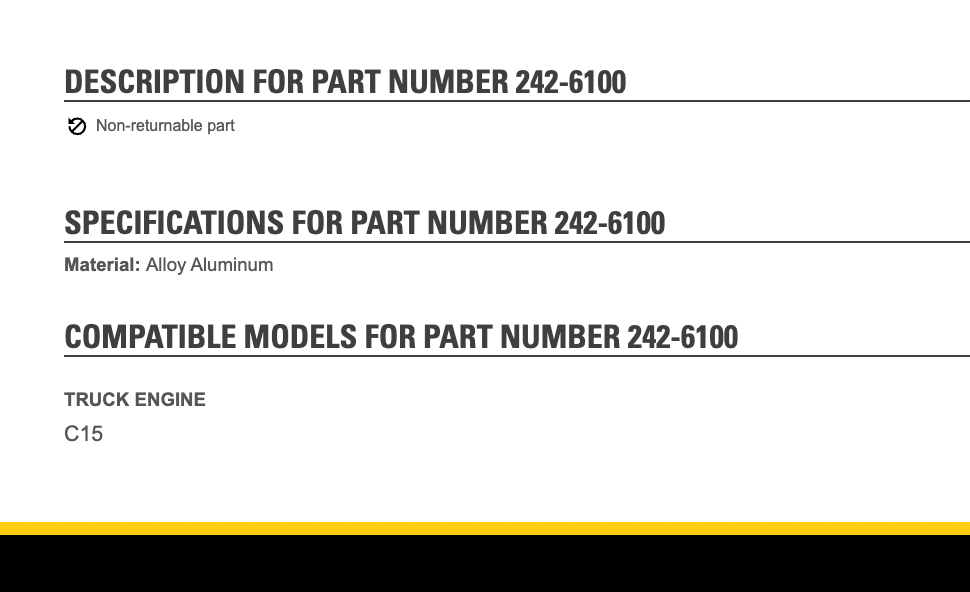 OEM Caterpillar C15 Diesel Engine Intercooler Part # 247-6406, 242-6101 is backordered and will ship as soon as it is back in stock.