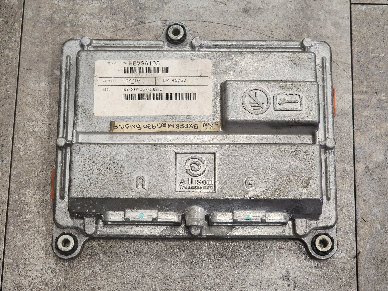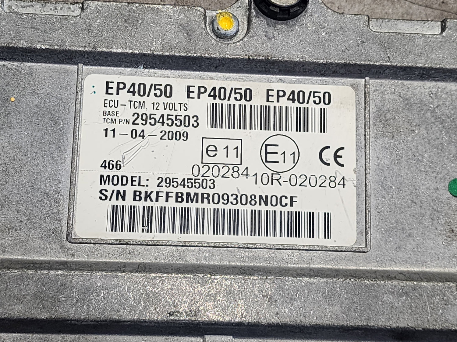 (TESTED W/ WARRANTY) 2009 Allison EP40/50 ECU-TCM For Sale, E11, 10R020284, 12Volts, 466, 020284, Customer Part # HEVS6105, Device: TCM_I0, SID: 65-S6105-003-J, Part # 29545503, Serial # BKFFBMR09308N0CF, Stock # 5566 | Tested & Inspected!