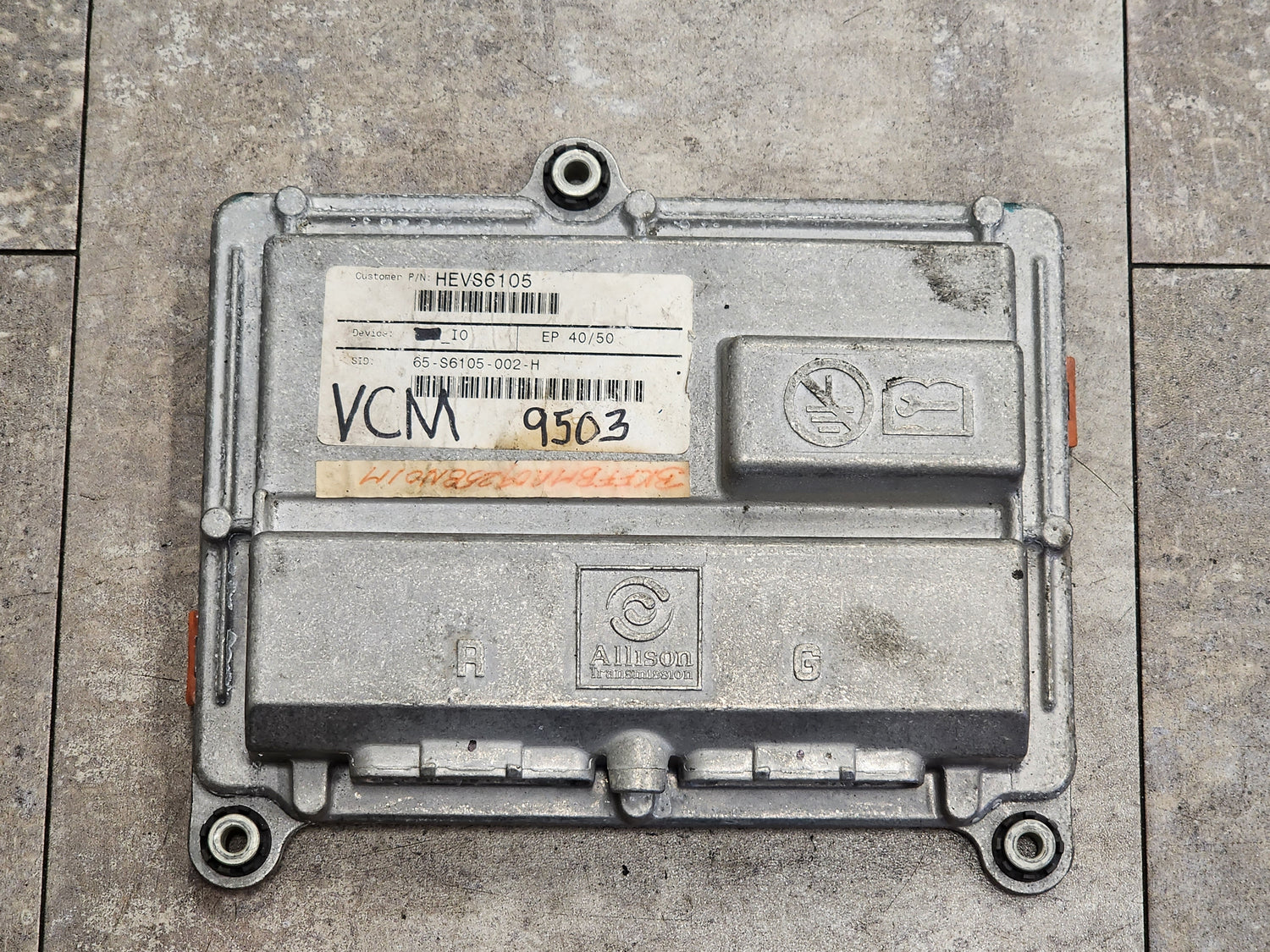 (TESTED W/ WARRANTY) 2009 Allison EP40/50 ECU-TCM For Sale, E11, 10R020284, 12Volts, 466, 020284, Customer Part # HEVS6105, Device: VCM_I0, SID: 65-S6105-002-H, Part # 29545503, Serial # BKFFBMR09258N01M, Stock # 5598 | Tested & Inspected!