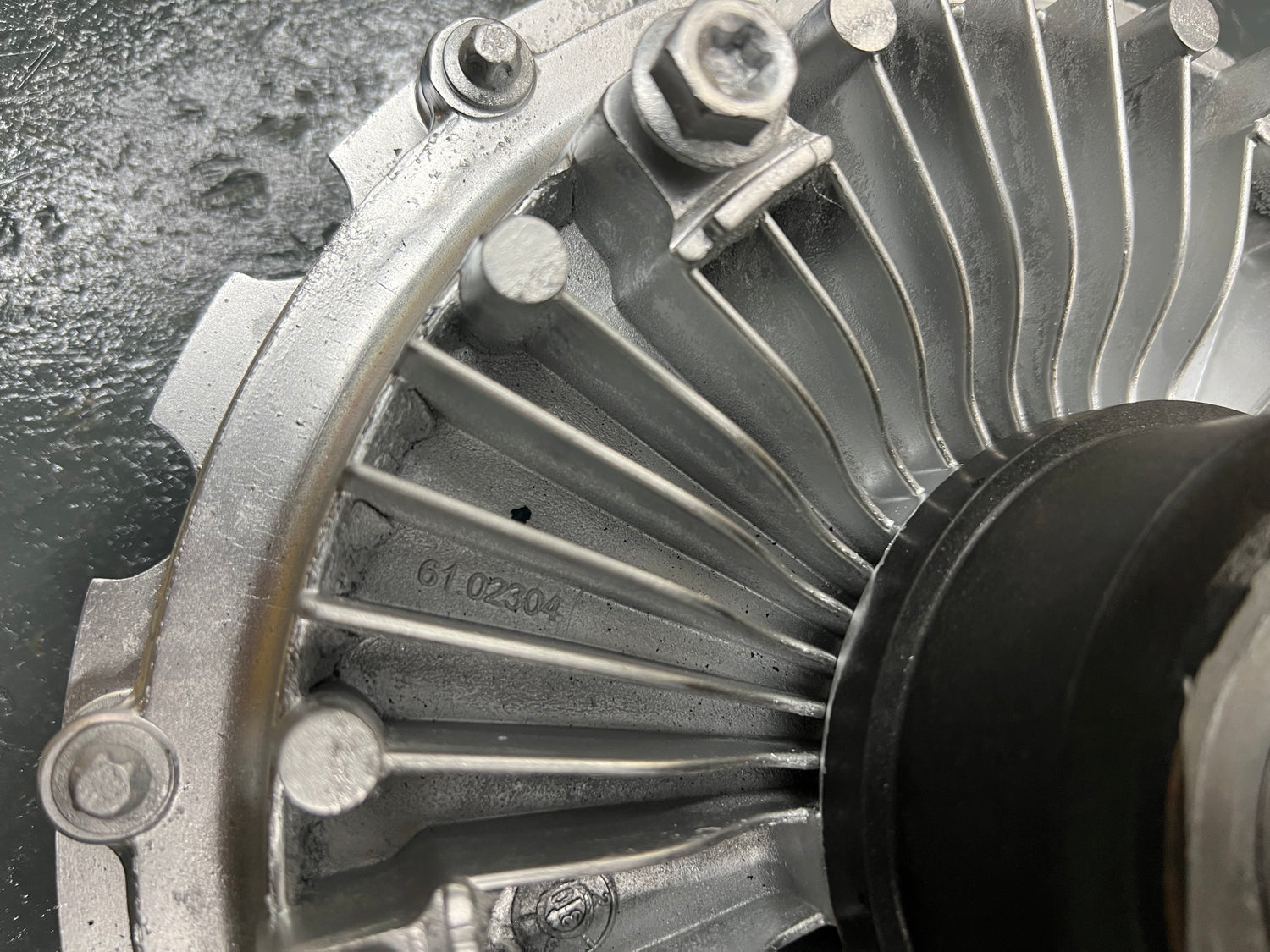 (GOOD USED) Volvo D13 Fan Clutch 20835149 For Sale, Part # 20835149, Mounting Base Part # 010021997, Other Part # 010021800, 010021964, 61.02304, 61 02184, PA6.6GF30, Stock 9199 | Tested & Inspected!